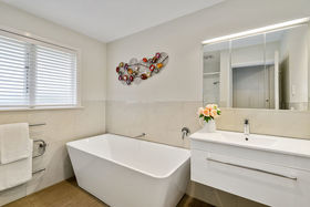 Super sized family kitchen with brand new acrylic bench top will keep everyone happy and provides the perfect space for summer entertaining or special celebrations. With a substantial master bedroom (ensuite and walk-in-robe) at one end of the house and three double bedrooms at the other, the configuration is ideal for teenage families or visiting guests.